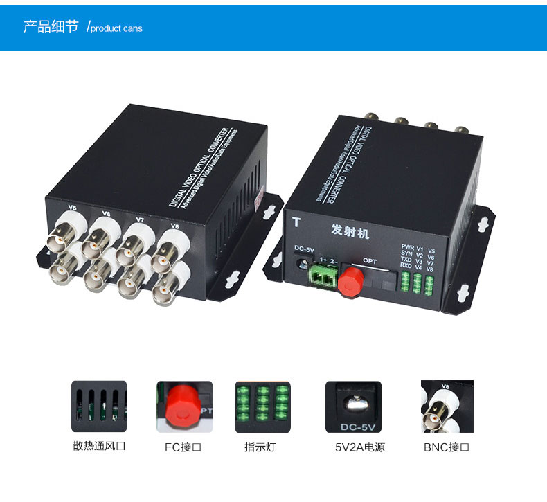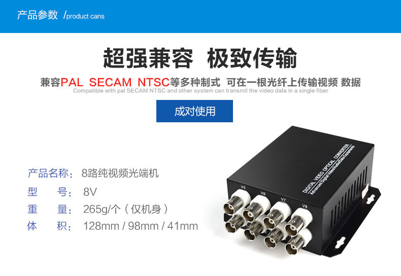 新版8路全數(shù)字視頻加可選選件光端機(jī)采用國(guó)際先進(jìn)的SOC數(shù)字信號(hào)處理技術(shù),及全數(shù)字視頻無(wú)壓縮傳輸技術(shù),將8 路視頻及多路音頻、數(shù)據(jù)、電話、以太網(wǎng)、開(kāi)關(guān)量等信號(hào)在單芯光纖上采用光纖的CWDM波分復(fù)用技術(shù)實(shí)時(shí)同步、無(wú)失真、高質(zhì)量地傳輸。全數(shù)字視頻光端機(jī)的光模塊和核心電路采用進(jìn)口元器件,穩(wěn)定性高,所有的光、電接口均符合國(guó)際標(biāo)準(zhǔn),安裝時(shí)免調(diào)整,適用于不同的工作環(huán)境。