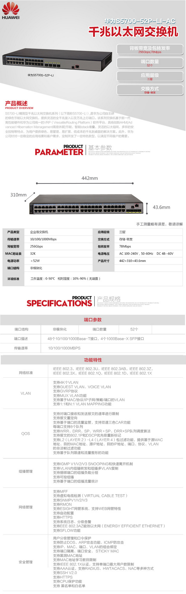 華為48端口千兆管理交換機(jī)