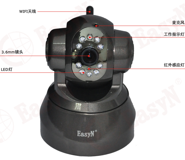 Easyn網(wǎng)絡(luò)攝像機(jī)是一種結(jié)合傳統(tǒng)攝像機(jī)與網(wǎng)絡(luò)技術(shù)所產(chǎn)生的新一代攝像機(jī),它可以將影像通過網(wǎng)絡(luò)傳至地球另一端,且遠(yuǎn)端的瀏覽者不需用任何專業(yè)軟件,只要標(biāo)準(zhǔn)的網(wǎng)絡(luò)瀏覽器IE即可監(jiān)視其影像。