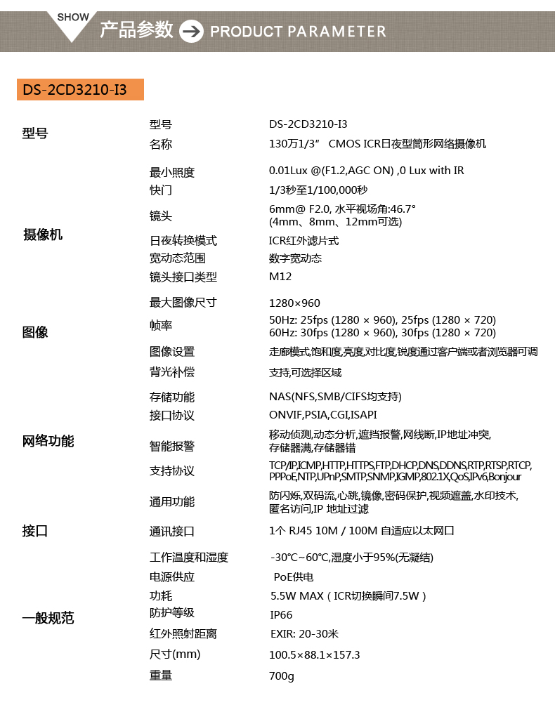• 產(chǎn)品型號(hào)DS-2CD3210-I3