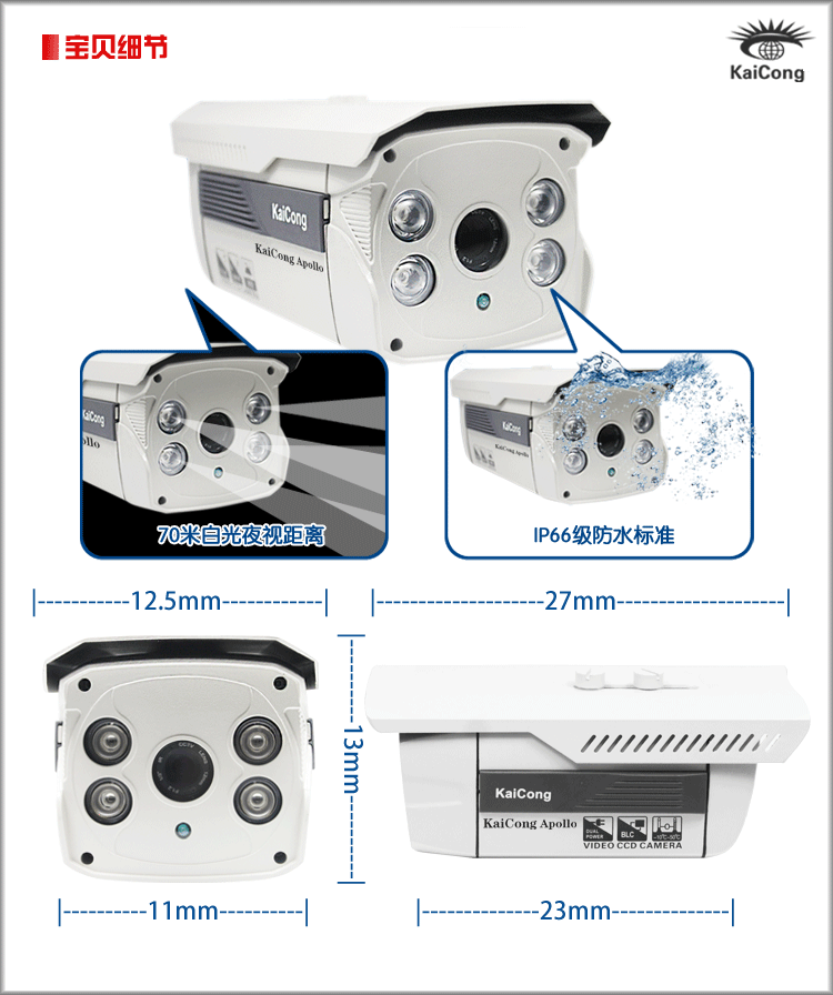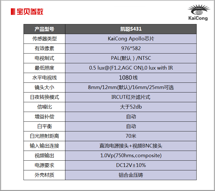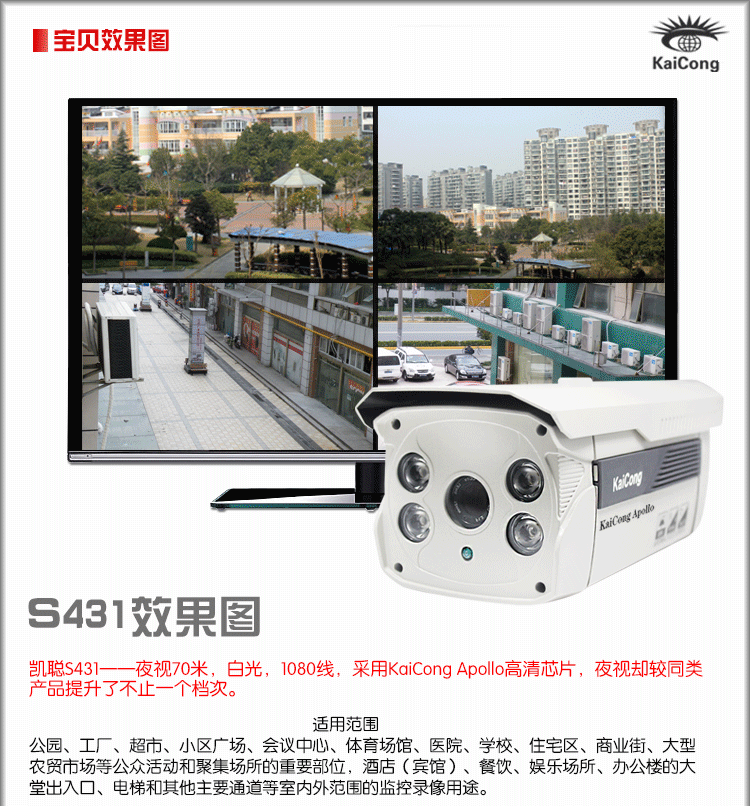 凱聰日夜全彩 攝像頭 高清監(jiān)控 攝像機(jī) 夜視70米 431 Apollo芯片 日夜彩色 1080線高清
