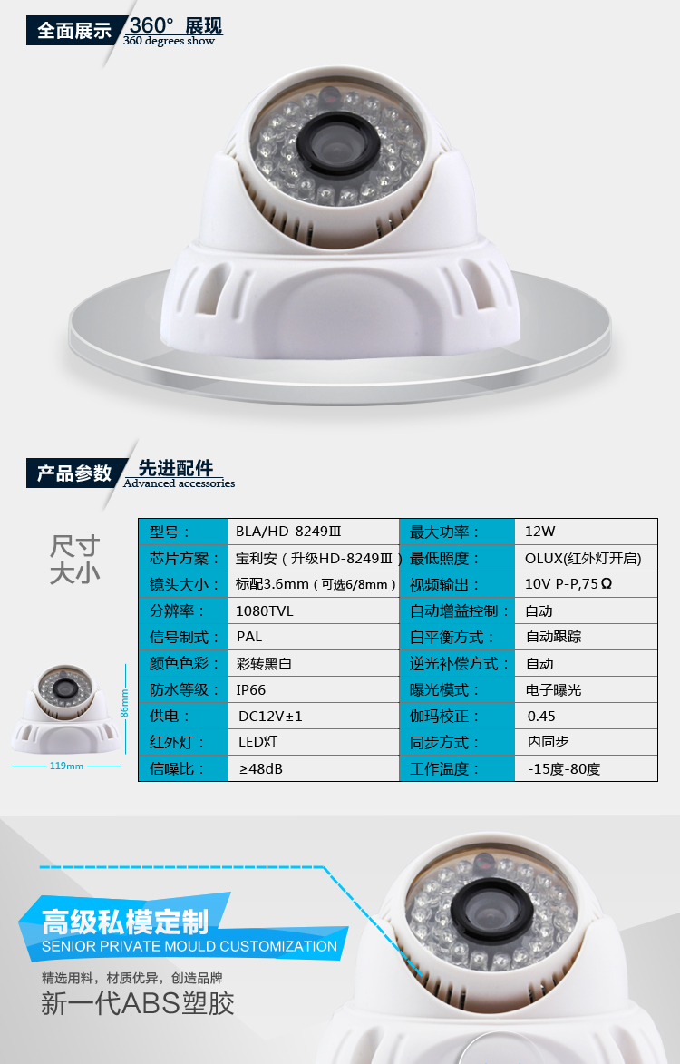 夜視1080線 監(jiān)控?cái)z像頭 海螺半球 紅外 監(jiān)控頭 攝像機(jī)夜視 監(jiān)控器