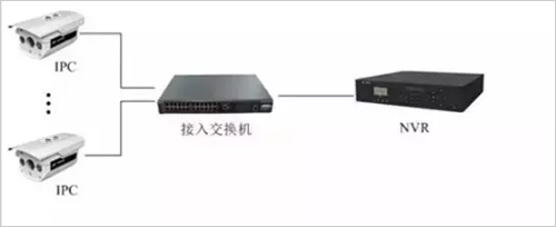 針對(duì)于1-8個(gè)點(diǎn)的小型工程,可以直接采用普通百兆交換機(jī)實(shí)現(xiàn)網(wǎng)絡(luò)環(huán)境搭建。假如采用200萬(wàn)像素IPC,碼流以6Mbps計(jì)算,8臺(tái)攝像機(jī)占用帶寬為8*6=48M,而百兆交換機(jī)實(shí)際使用率為50%-70%,即50-70M,完全可以滿足8臺(tái)IPC的傳輸要求。